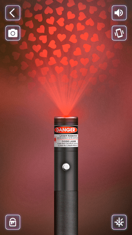 Download and install the app on the smartphone. Choose the laser pointer. Сlick on the screen and the friends will be delighted to see the bright colorful rays. The laser pointer headers are available. Change the headers and see how the beam becomes an ornament in the mobile.