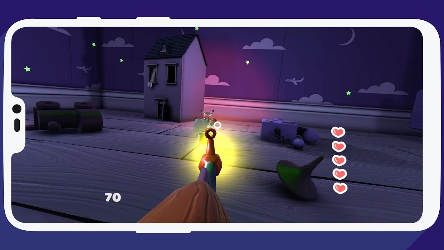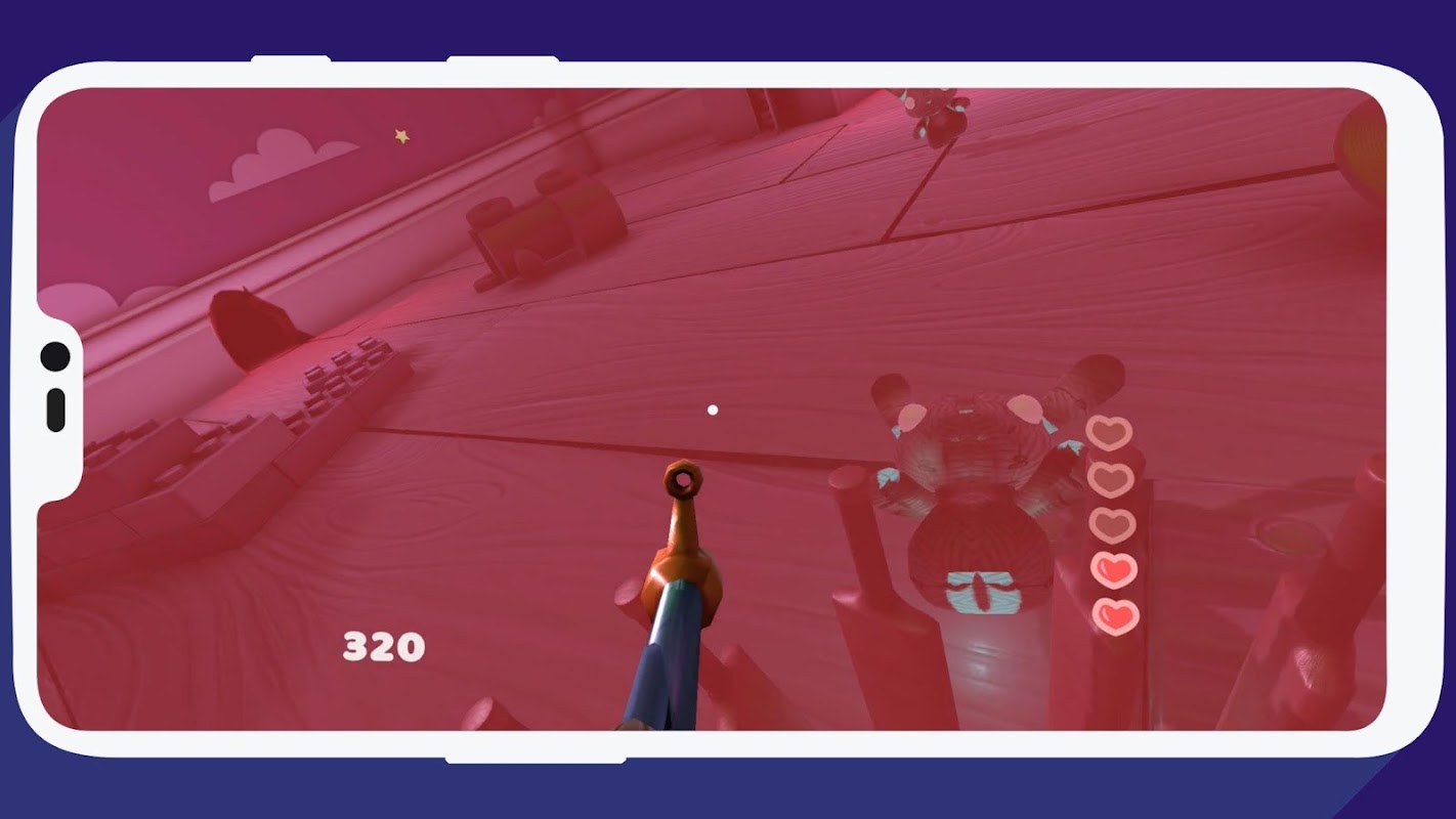 The toys are infected! Avoid their attacks by pointing at them to shoot. Don´t forget to look around!