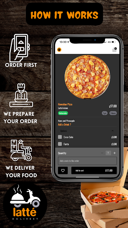 Vous pouvez désormais commander facilement votre plat préféré, où que vous soyez, grâce à l'application Latte Delivery gratuite et facile à utiliser.