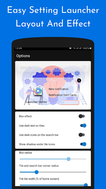 🚀 Minimalist design - Following in footsteps of Material Design, Launcher Center Pro puts all your apps in the App drawer, keeping the Home screen neat and clean.
