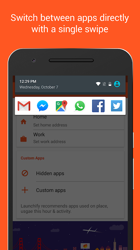 Launchify recommends you the right app at the right time depending on the time, place and if you’re driving! Multi-task on the go: you can now swap apps in just a swipe from your notification bar. Quick launch apps from your lock screen.