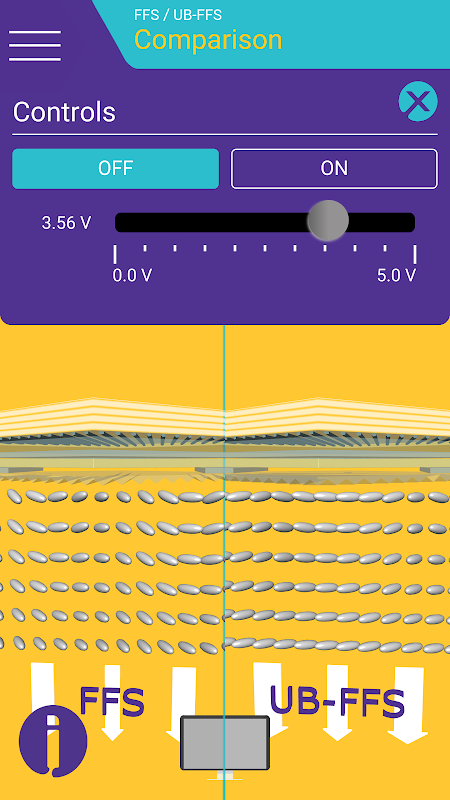 Surf à travers différentes couches et technologies et de l'arrêt où vous souhaitez en savoir plus. textes clairs fournissent des informations sur la structure, le profil de pixels, les fonctions, et bien plus encore. Avec la fonction de commutation que vous contrôlez: définir des tensions et de l'expérience comment ils affectent la structure de la couche de cristaux liquides et l'effet de couleur.