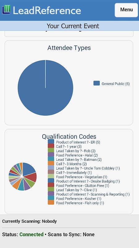Une fois que vous avez mis en place votre événement en ligne, connectez-vous à l'application de LeadReference, qui sera synchronisé avec votre compte en ligne, et vous pouvez commencer la capture conduit sur votre mobile.
