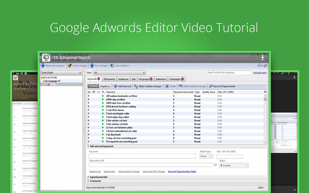 The purpose of this Adwords Editor video course is to teach complete beginners how to use Google Adwords Editor. Adwords Editor is a downloadable program you can use to make bulk changes to your Adwords PPC campaigns.