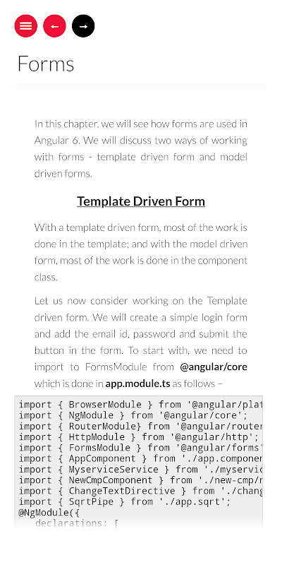 This FREE app will help you to understand Angular6 Tutorial properly and teach you about how to Start Coding using Angular6. Here we are covering almost all Classes, Functions,