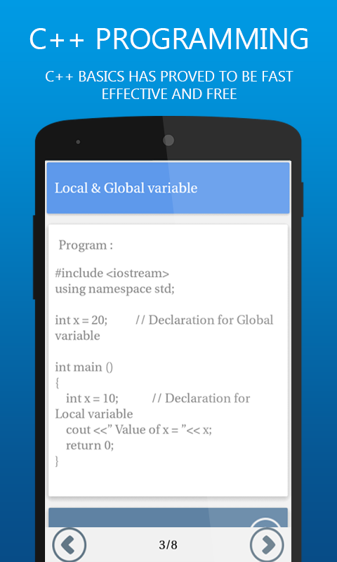 C++ Basic is a FREE programming language course and introduction to C++ for beginners by Predict Apps.Whether you've had any prior programming experience or not, this app will help you learn all you need to know in order to start creating and compiling your own programs. Learning C++ Basics with this app has proved to be fast, effective and free. This app will show you how easy it is to become a programmer. Best Application for People who want to learn Basics of C++ Programming. This application provides material of all the important terms of C++ Basic.