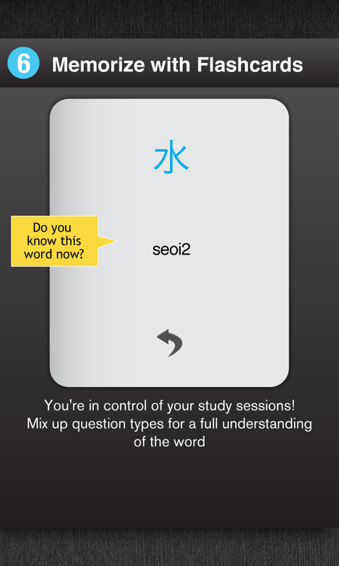 - Custom Flashcard Settings: You're in control of your study sessions. Mix up question types (recognition, production, audio and visual) for a full understanding of each word