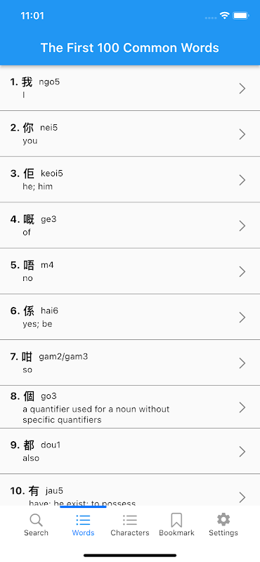 Cette application mobile est une plateforme ouverte d'auto-apprentissage de la langue chinoise (y compris le cantonais). La plate-forme s'appuie sur la technologie linguistique de corpus et les connaissances linguistiques, telles que les fréquences d'utilisation des caractères et des mots, les collocations de mots, les mots à haute fréquence, etc. La plate-forme entend fournir des informations et des exemples en chinois proches de ce qui est utilisé dans la vie quotidienne. . Cette approche peut aider les utilisateurs à apprendre et à maîtriser la langue chinoise de manière plus efficace. Les enseignants de première ligne, les compilateurs de dictionnaires et les concepteurs de matériel d'apprentissage peuvent également bénéficier de cette plateforme pour la conception de programmes et le développement de matériel pédagogique.