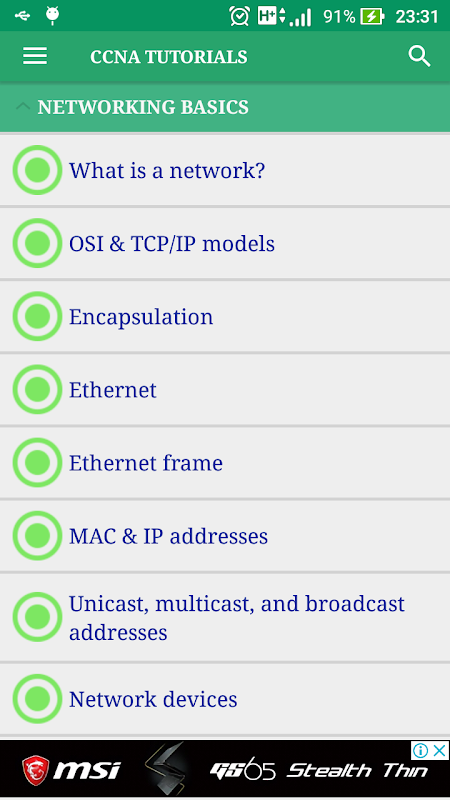 ✓ CCNA (Cisco Certified Network Associate) is a certification from Cisco, the world’s most famous company that manufactures and sells networking equipment. This certification helps you to become familiar with a wide range of topics. This app will help you easily learn CCNA and Practice any time.
