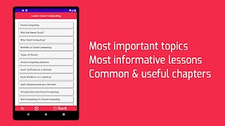 Learn Cloud Computing Offline is an educational application. If you are looking for basic cloud computing tutorial app so you are in a right place. This application will provide you most important & informative lessons. This basic cloud computing book app will give you definition and classification.