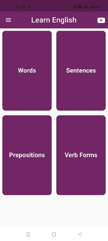 1. Vocabulaire étendu : l'application fournit une vaste collection de mots anglais couramment utilisés dans divers contextes. Apprenez leurs significations, synonymes, antonymes et usages grâce à des exercices interactifs.