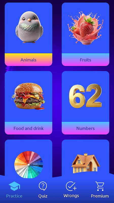Apprentissage interactif : maîtrisez les mots anglais avec des images et des sons colorés.