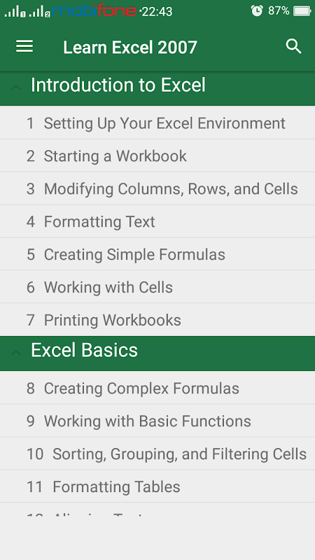 This app will guide you through the new features of MS Excel 2007 to help you easily learn Ms Excel and Practice any time.