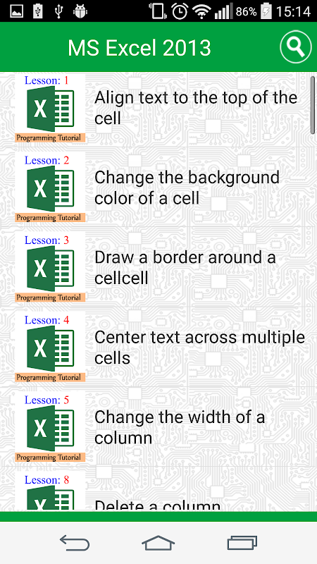 This free MS_Excel tutorial app covers in detail basics, advance and Important shortcuts.