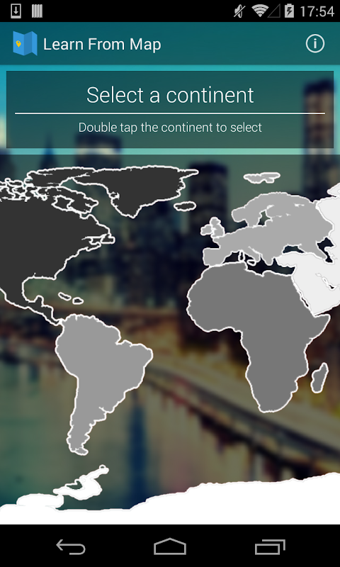 This application is intended to those who study geography. The users get to use an interactive and colorful map to answer questions by pinning relevant geographical regions on the Map. The application allows to select a continent first and then presents questions based on the selection. Each time different questions are presented and the users who play a continent repeatedly can get learn more about it every time.