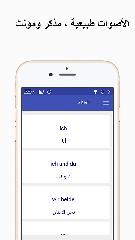 Voir les phrases et les mots de sens allemand et arabe