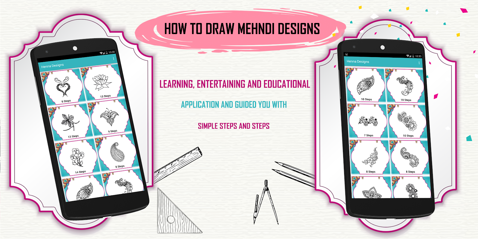 Apprenez à dessiner les dessins mehndi est une application qui vous apprend à dessiner facilement de beaux dessins au henné, étape par étape. si vous n'avez aucune connaissance en dessin, notre application est très facile et conviviale et vous aidera à dessiner chaque dessin de mehndi simple. À la fin, vous pourrez créer une image complète du design cool de mehndi et le partager avec vos proches médias.