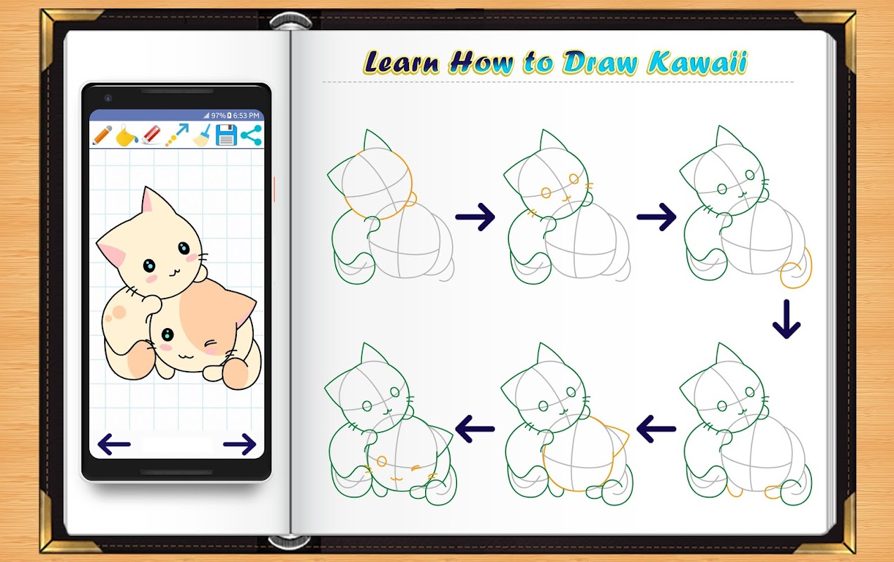 If you want to draw beautiful kawaii anime but you did not know how to draw, no worries. This drawing tutorial for kids application will provides some of adorable kawaii drawing step by step and don't need any special skills, it’s self-teaching.
