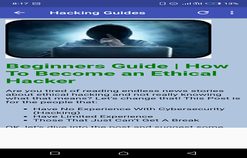 lire tout à ce sujet et savoir sur le piratage. il est gratuit à télécharger et à apprendre sur le guide des étapes de piratage. Vous pouvez télécharger d'autres applications de mon catalogue autres que celles de l'application Apprendre à pirater - Guides