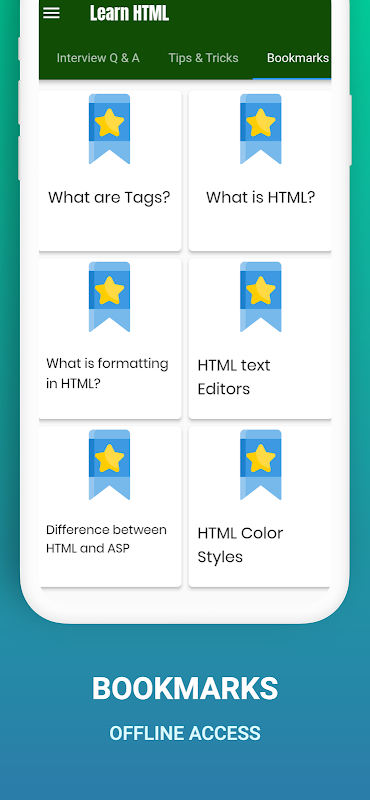 Utilisez cette application HTML et développez vos compétences en développement Web. Donc, pas besoin d'une connexion Internet pour accéder aux signets. Le langage et le codage HTML sont très importants pour le développement Web. Cette incroyable application de langage de programmation HTML a un contenu merveilleux. La meilleure collection est disponible ici. Cette application complète de didacticiel HTML est également utile pour les étudiants et les débutants.