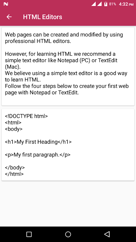 Just install this app "Learn HTML Pro - Offline Program Run " and take your first step towards success.