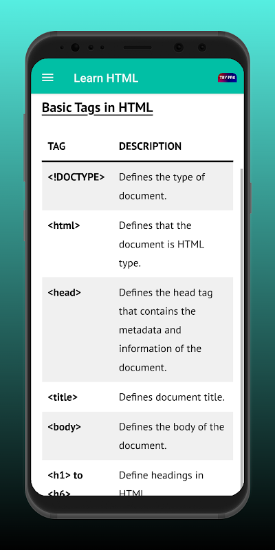 L'application "Learn HTML" rend l'apprentissage de votre code amusant, que vous cherchiez à apprendre les bases ou à devenir un programmeur expert. Voici les fonctionnalités qui feraient de nous votre choix unique pour apprendre la programmation HTML -