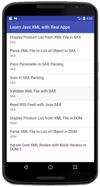 Cette application vous donnera de véritables applications dans l'utilisation de Java XML