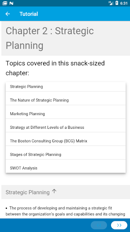 You have limited access to the content provided. For full access to the content, please login and purchase this application. This app provides a quick summary of essential concepts in Marketing by following snack sized chapters: