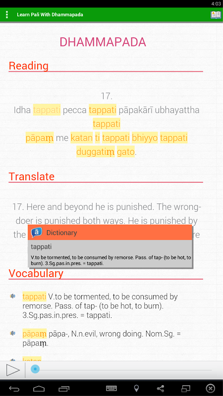 Let's improve reading skills with this Learn Pali with Dhammapada app.