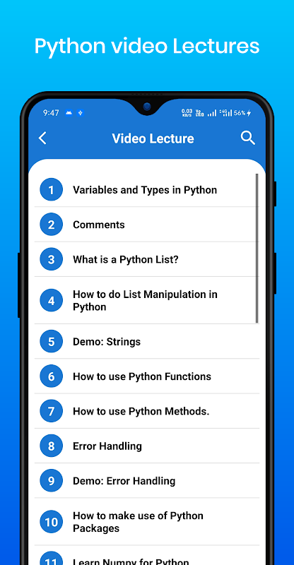 Learn Python with AI a une interface utilisateur très simple. c'est la meilleure application pour vous permettre d'apprendre gratuitement le langage de programmation Python. Téléchargez l'application maintenant pour devenir un Learn Python With AI.