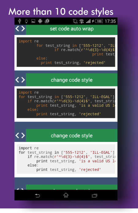 cette application construite avec l'aide de la bibliothèque Codeview: https://github.com/avraampiperidis/Codeview