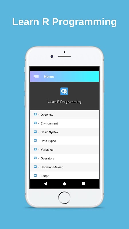 R est idéal pour l'apprentissage automatique, la visualisation et l'analyse de données et certains domaines du calcul scientifique. Cette application contient tous les principaux sujets de la programmation R avec d'excellents exemples de code et projets.