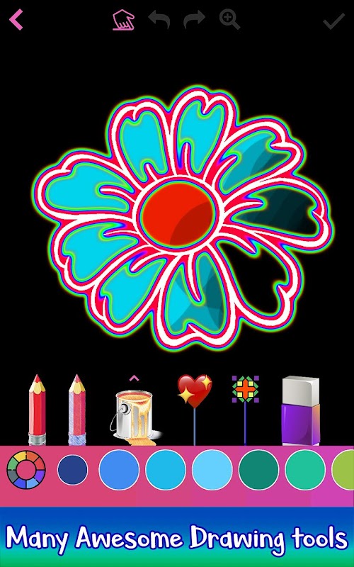 Dessiner Glow Fleur donne le dessin bureau pour vous et créer des images de fleurs qui brillent dans ce livre de dessin, créer cette lueur artboard avec un croquis doodle qui brille dans l'image drawing.Each sombre comprend quelques steps.You peut dessiner, peindre et couleur de remplissage dans ce app.