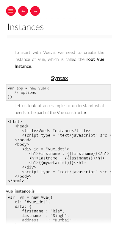Cette application GRATUITE vous aidera à comprendre correctement VueJS et vous apprendra comment commencer à coder. Ici, nous couvrons presque toutes les fonctions, bibliothèques, attributs, références. Le didacticiel séquentiel vous permet de savoir du niveau de base au niveau avancé.