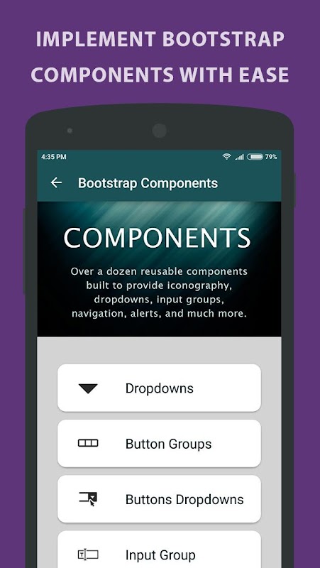 Cette application est votre livre de poche pour apprendre le développement Web en utilisant le framework Bootstrap 4.1.