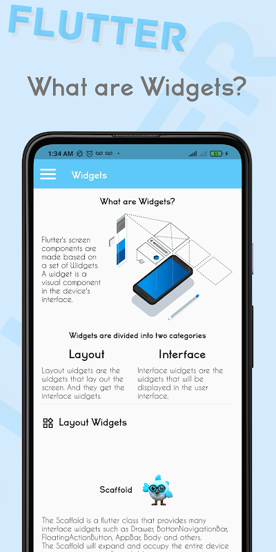 In this application you can learn Flutter and Dart on your own cell phone.