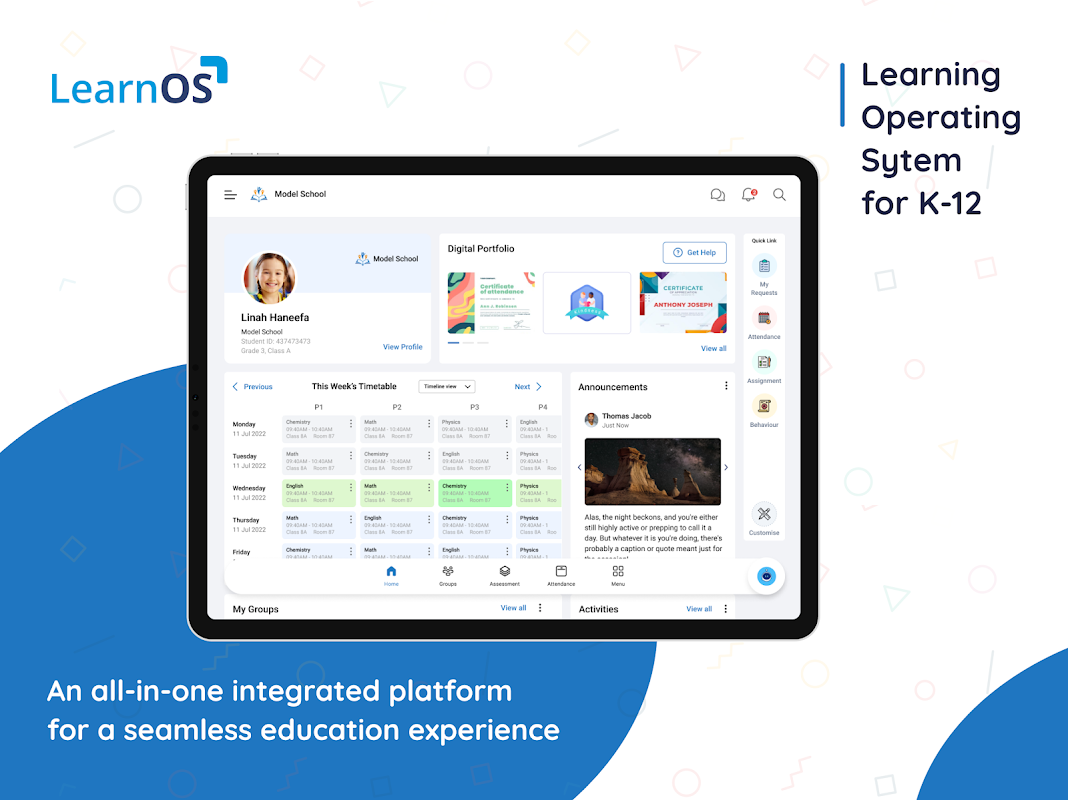 • Solution unique pour l'éducation, avec une plateforme EdTech intégrée tout-en-un pour les étudiants, les enseignants et les parents.