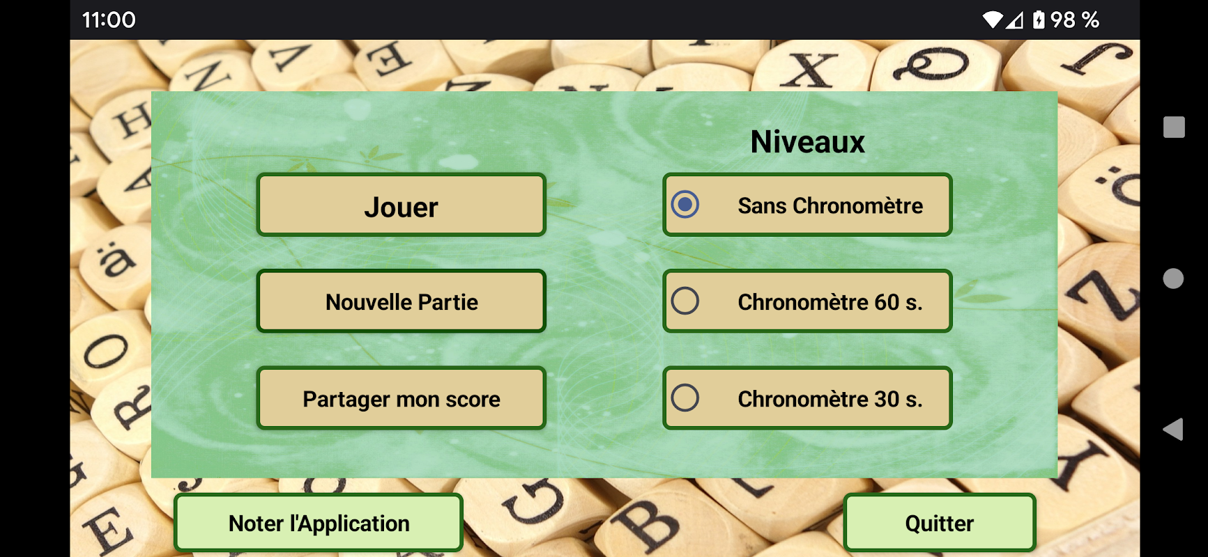 Le but du jeu est de trouver le plus long mot à partir de 10 lettres tirées au hasard. Les verbes conjugués sont acceptés.