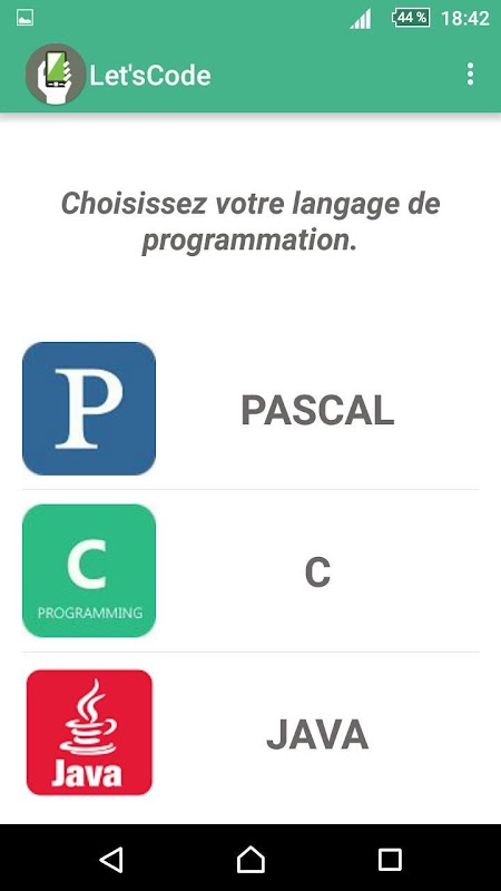 Alors , On met à votre disposition une merveilleuse application mobile <> conçue tel qu'un aide-mémoire pour les langages basics JAVA? PASCAL? C.