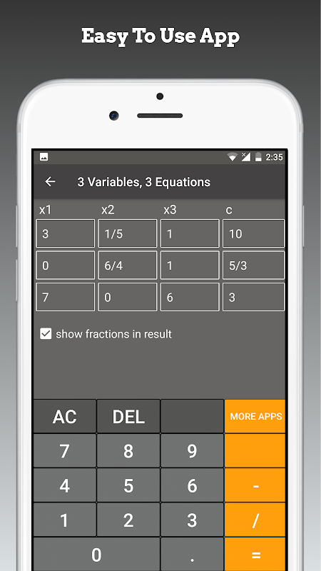 Meilleur outil mathématique pour l'école et le collège! Si vous êtes étudiant, cela vous aidera à apprendre l'algèbre linéaire!