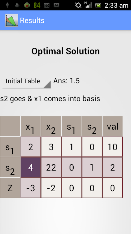 Cette application permet de résoudre les problèmes d'optimisation linéaire en utilisant la méthode simplex primal, méthode duale du simplexe et 2 méthode du simplexe phase.