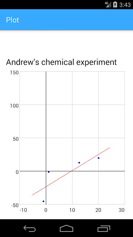 This application allows you to create several samples and, in each one, you just have to add the points (X and Y pairs) and the application will calculate all for you. It’ll calculate the A (inclination) and B (intersection), and you can even see the graphic plot with the points and the adjusted line.