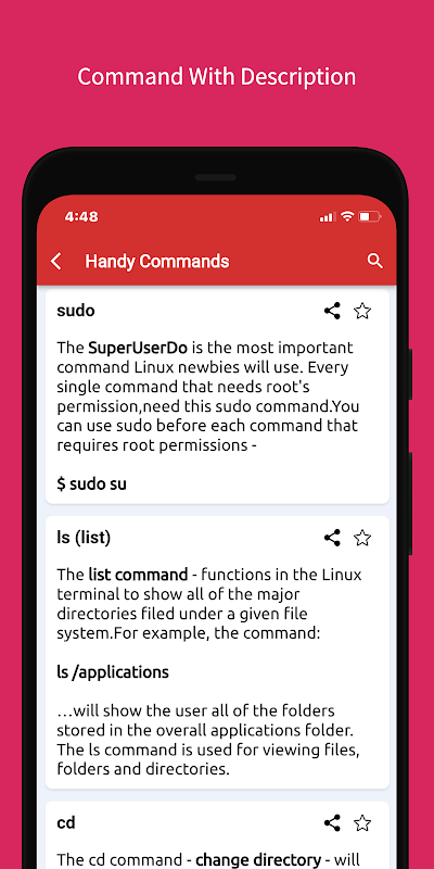* Comprend plus de 200+ listes de commandes avec une description comme une mini bibliothèque de commandes Linux.