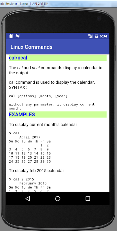 Cette application offre 123 commandes Linux avec une brève description et des exemples.