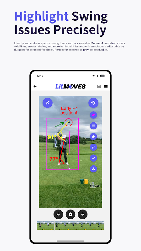 Mettez en évidence les problèmes de swing avec des annotations personnalisables, parfaites pour un feedback et un coaching personnalisés.