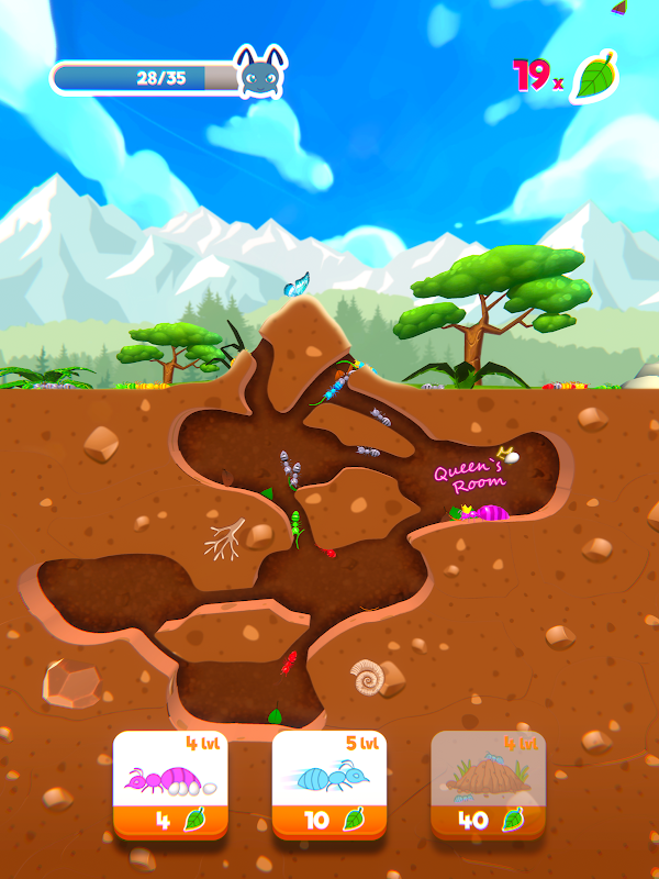 🌟 Upgrade the queen ant to lay more eggs and grow your army