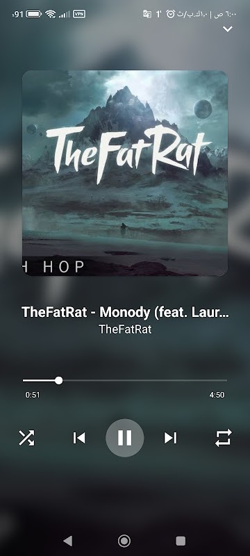 *Page de chanson : les informations sur la chanson s'affichent avec la possibilité de contrôler la chanson et de passer d'une chanson à l'autre
