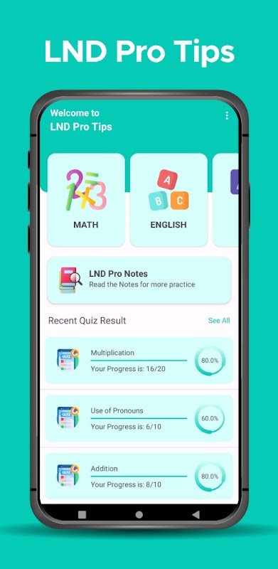 L'application LND Best Practice a également des fonctionnalités pour pratiquer chaque sujet de LND comme l'anglais, les mathématiques et l'ourdou.
