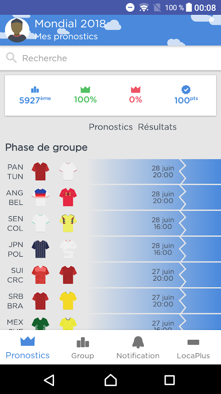 LocaCup est la 1ère application qui te permet de pronostiquer les matchs de la coupe du monde 2018. Compare tes résultats à ceux de tes amis, tes proches, ta famille et deviens le meilleur pronostiqueur.
