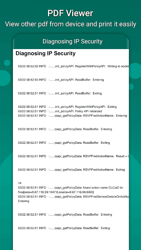 Log Reader est une application pour lire, enregistrer et convertir le journal en pdf. Il inclut des fonctionnalités telles que : pouvoir sélectionner un fichier pdf sur l'appareil pour le visualiser et l'imprimer. Il comprend également une fonction "convertisseur pdf" qui transforme un fichier journal en fichier pdf sans aucune perte de texte.
